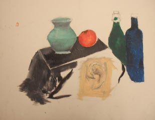 Currently they are working from a still life set up in the studio. Each student selected an artist whose imagery interpretation and color usage they wanted to emulate in their own works.